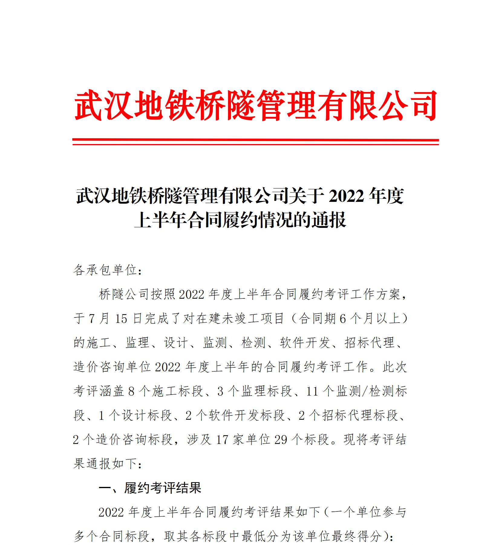 近日,在武汉地铁桥隧公司对2022年度上半年招标代理单位合同履约情况的考评中,买足球外围平台推荐公司再次获得优秀等次。