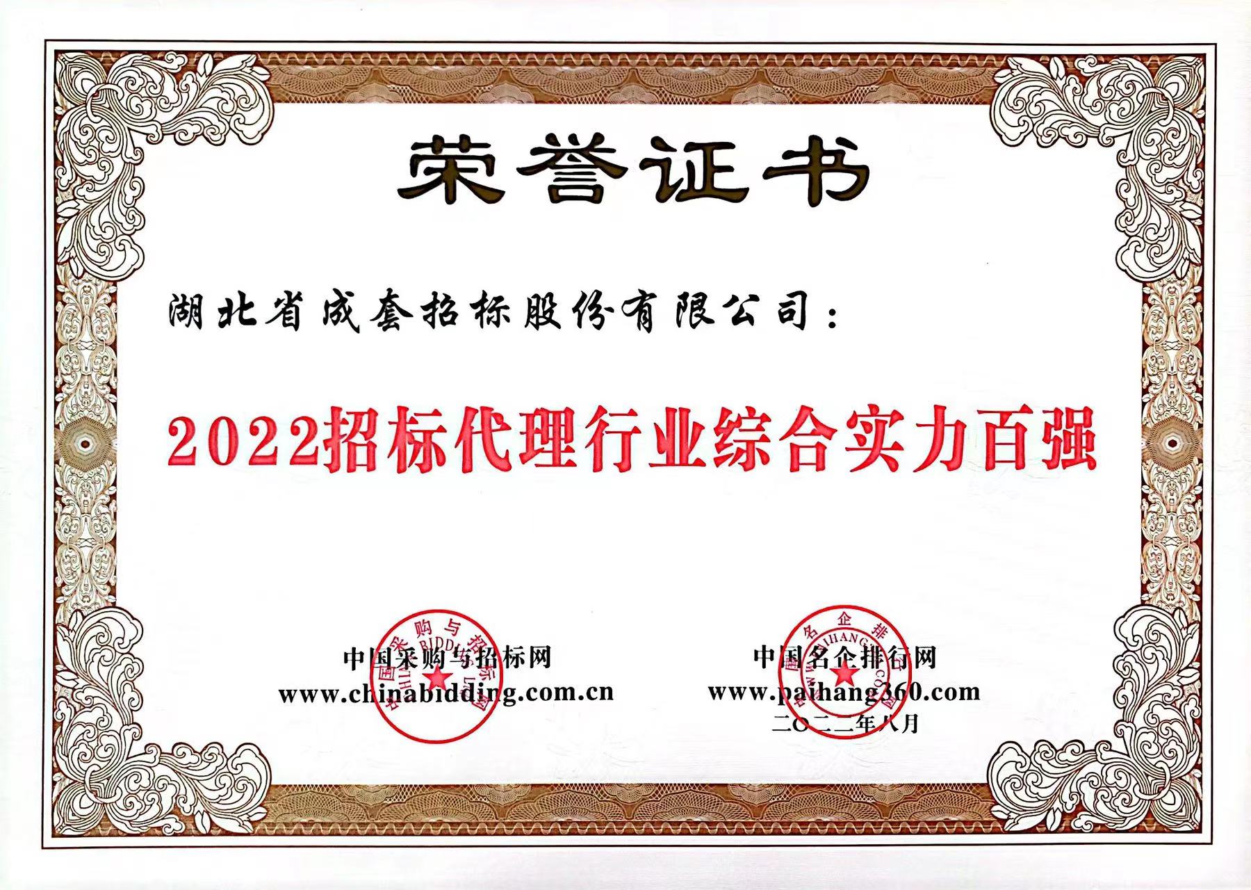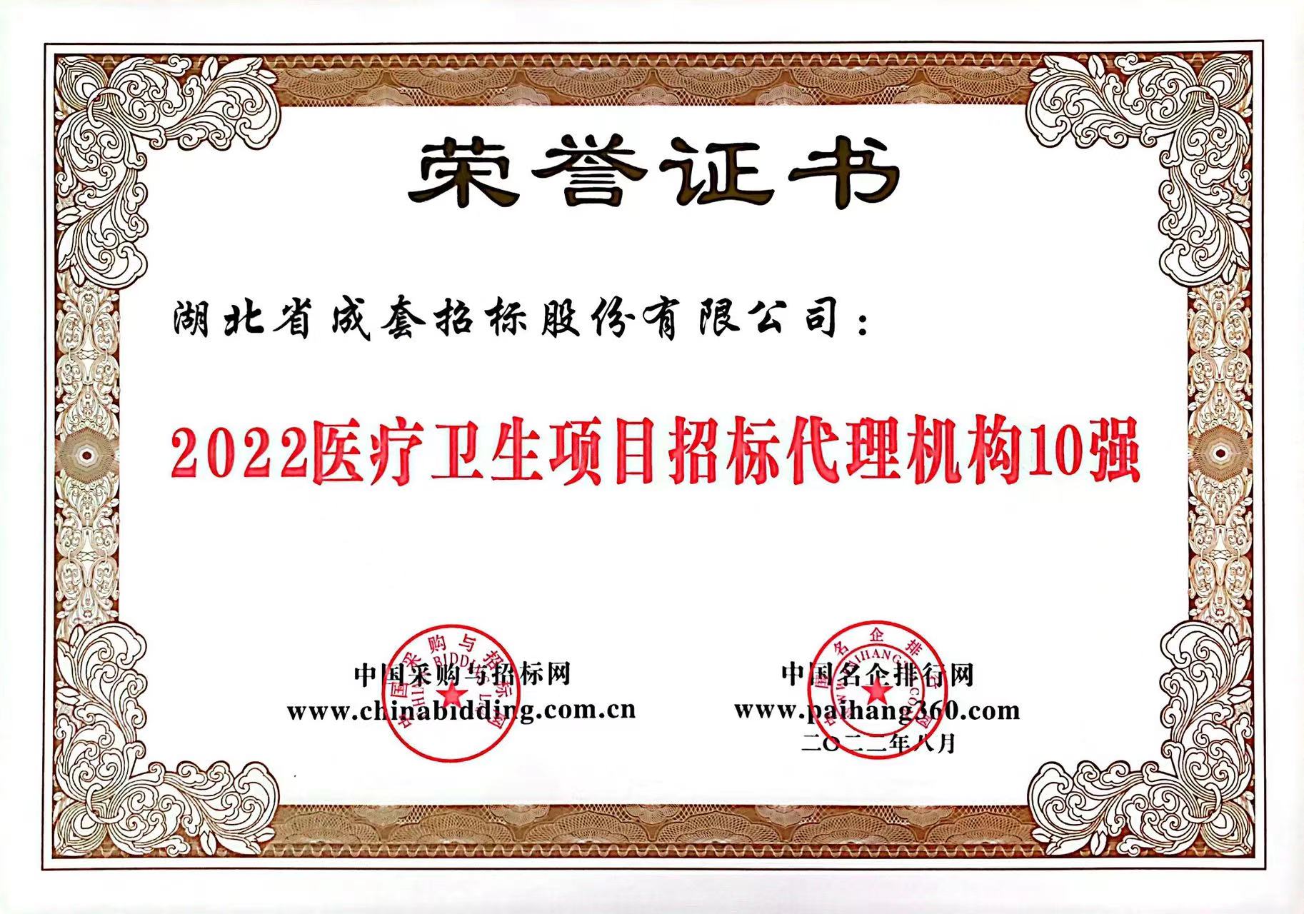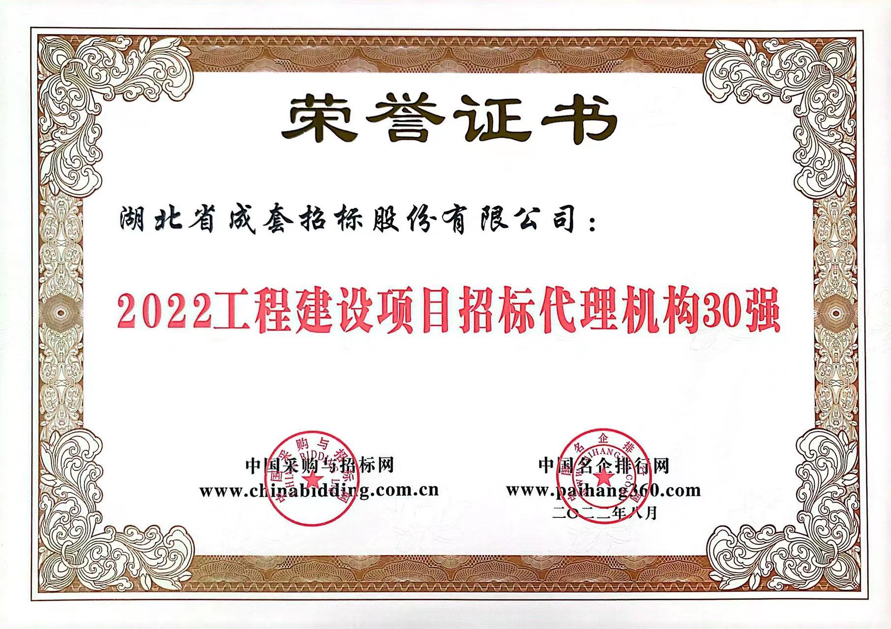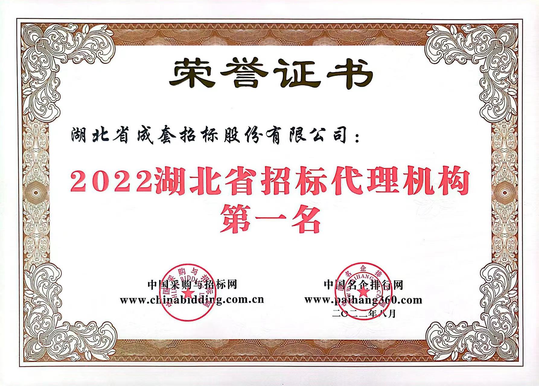 近日,在由中国采购与招标网、中国名企排行网联合主办的“第16届全国招投标领域年度聚焦”活动中,足球外围平台公司喜获“2022湖北省招标代理机构第一名”“2022招标代理行业综合实力百强”“2022工程建设项目招标代理机构30强”“2022政府采购项目招标代理机构30强”“2022医疗卫生项目招标代理机构10强”“2022工程造价咨询行业综合实力百强”六项荣誉。