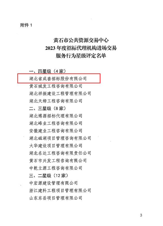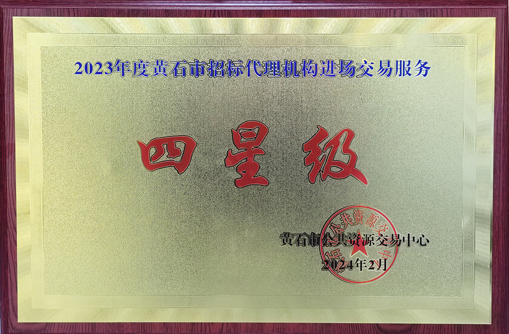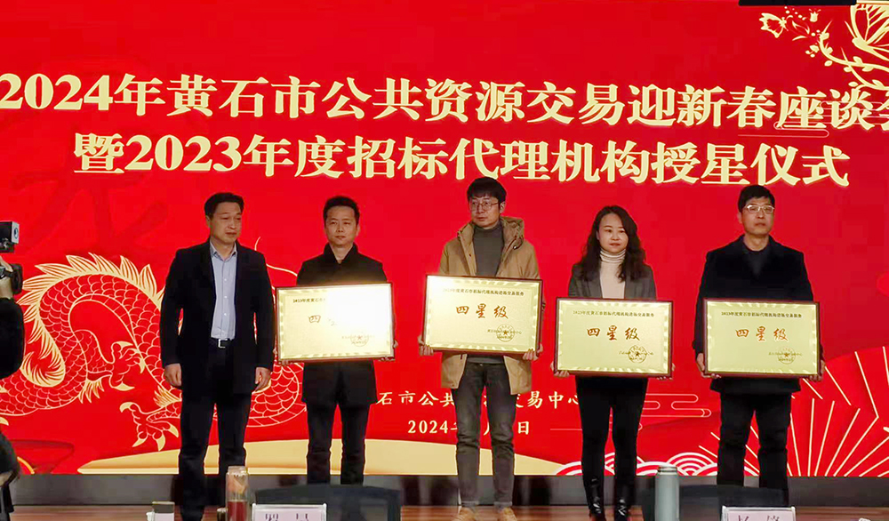 2月2日,在由黄石市公共资源交易中心主办的“2024年公共资源交易迎新春座谈会暨2023年度招标代理授星仪式”上,买足球外围平台推荐凭借良好的履约评价和进场交易服务质量,以综合评分第一的佳绩被授予最高四星级评价。公司党委委员、副总经理李启发受邀参加会议。