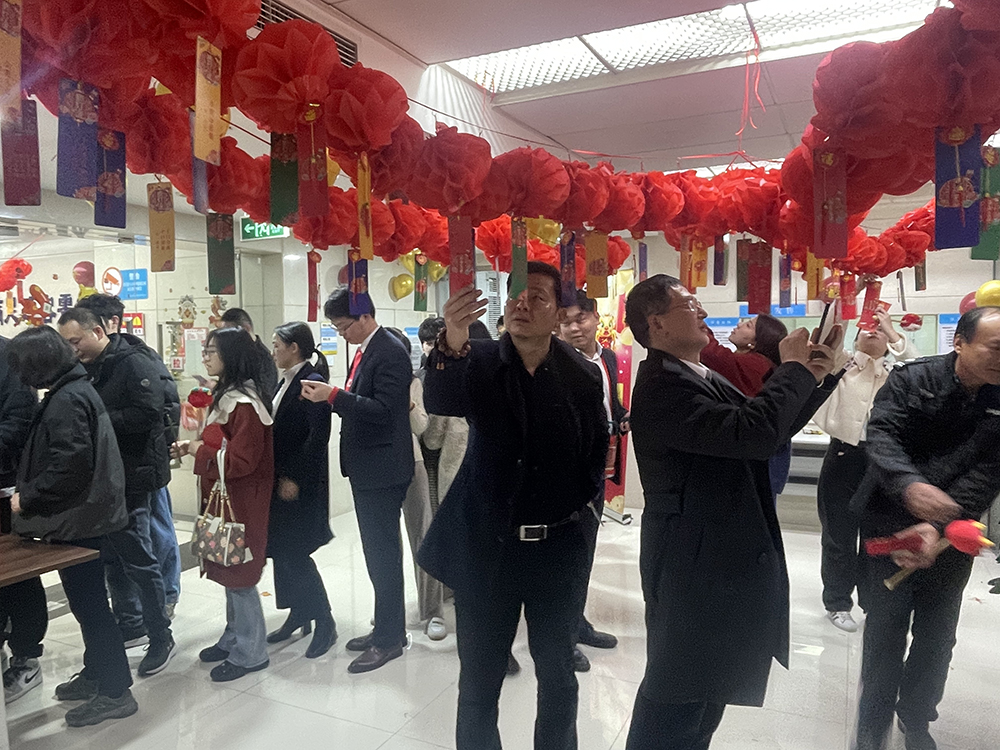 新春团拜结束后是公司精心策划的游园会环节。公司全体员工带着饱满的热情参与到猜灯谜、写春联、折灯笼、蒙眼敲锣等年味挑战活动中,活动现场精彩纷呈,热闹非凡。