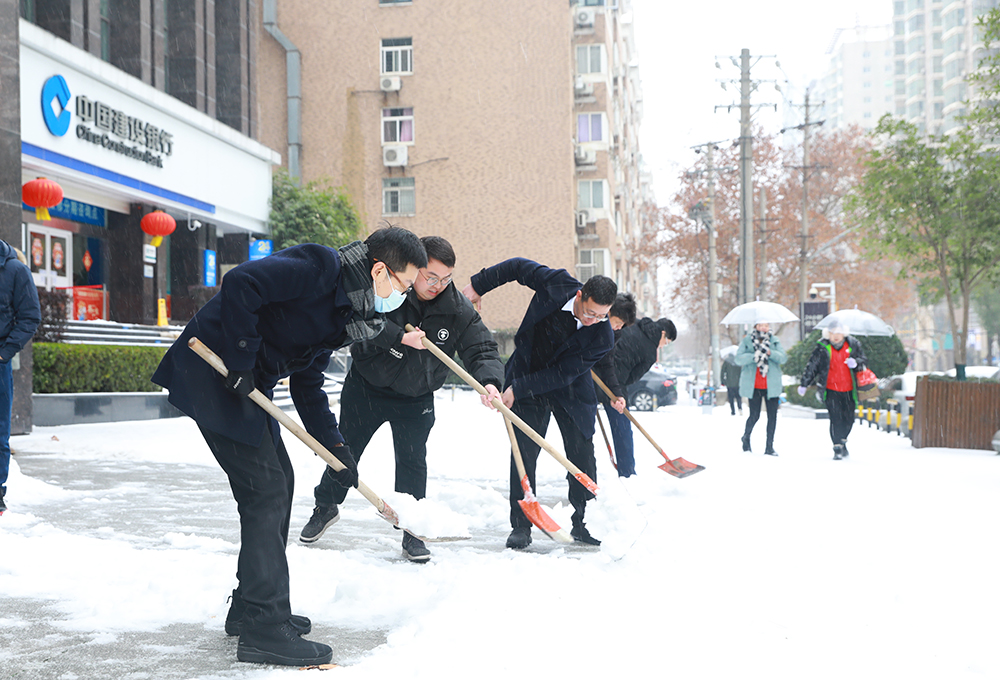 2月22日,武汉市低温雨雪冰冻天气持续,给出行带来了诸多不便。为贯彻落实省委组织部《关于在防范应对低温雨雪冰冻灾害中充分发挥基层党组织战斗堡垒作用和广大党员先锋模范作用的通知》精神,足球外围平台公司党委迅速集结党员干部,开展铲雪除冰志愿行动,全力铲除公司办公大楼周边路面的积雪障碍,保障了道路通畅和人员出行安全。