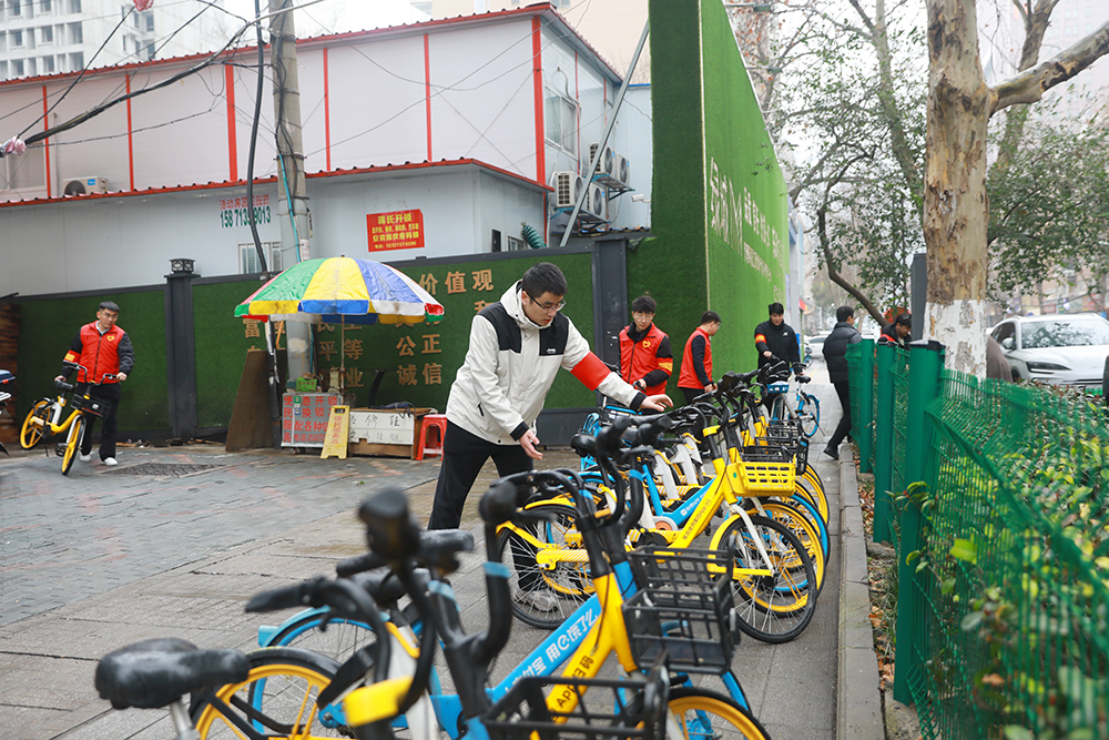 近日,公司20余名团员青年下沉姚家岭社区开展志愿服务行动,对社区辖区范围乱停放的共享单车进行了整理,将共享单车按秩序整齐摆放回停车区域,社区街道的环境得到了优化,收获行人和附近居民的好评。