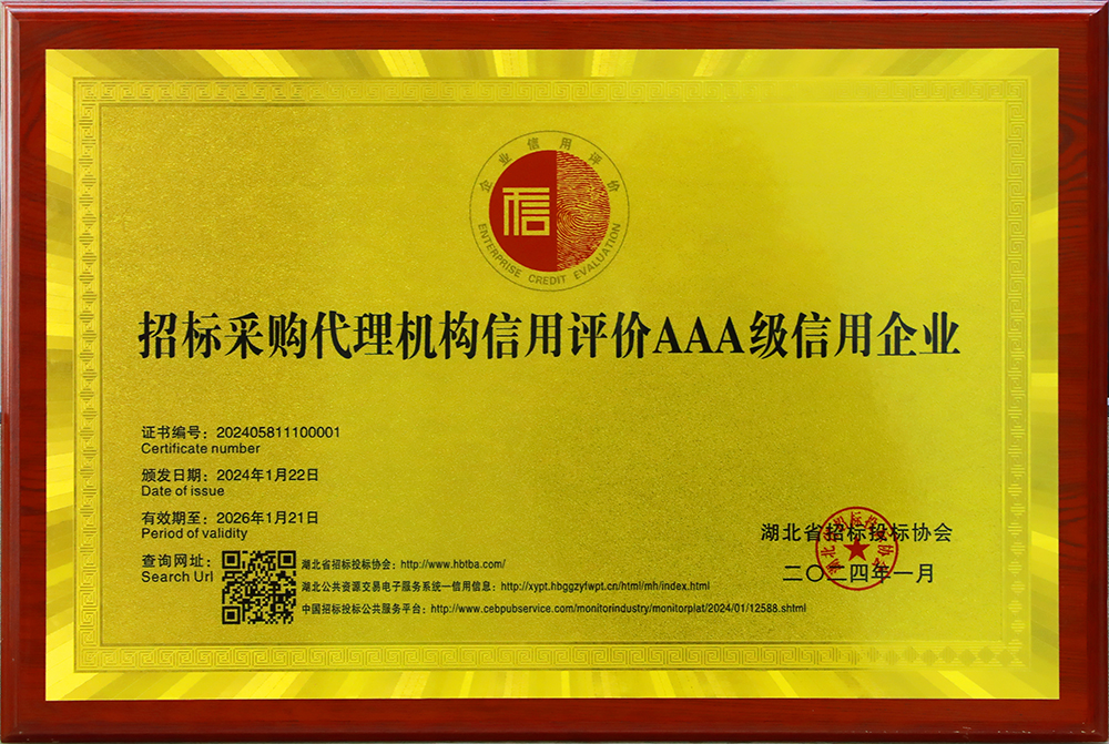 近日,在由湖北省招标投标协会举办的第三届四次理事会暨表彰大会上,足球外围平台公司获评招标采购代理机构信用评价最高AAA等级,公司20名业务骨干获“招标先进个人”荣誉称号,进一步体现社会各界对公司在招标采购咨询服务领域综合实力的高度认可。