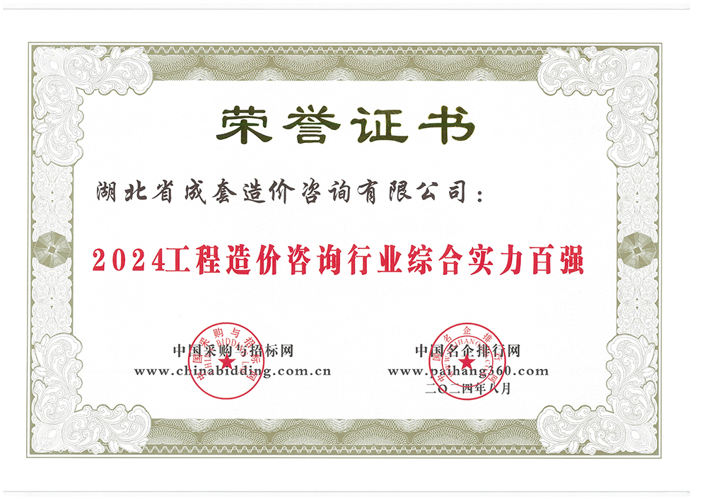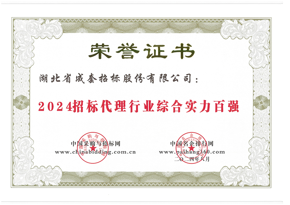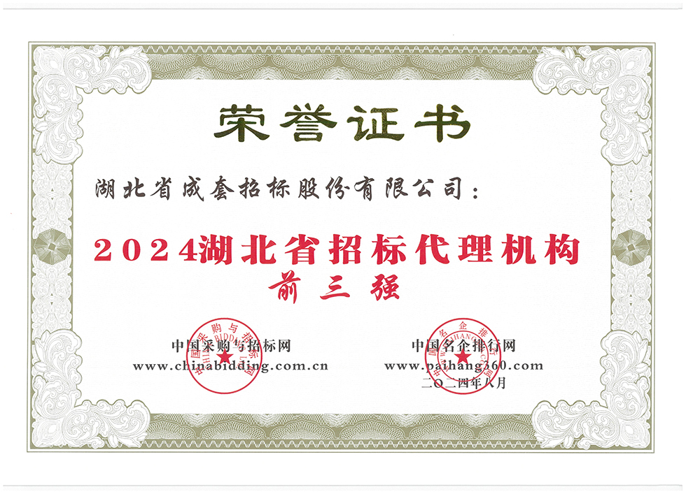 公司还同时获得2024年“湖北省招标代理机构前三强”“招标代理行业综合实力百强”“工程造价咨询行业综合实力百强”“《招标投标法》颁布施行 25 周年招标代理行业公益奖”四项荣誉。