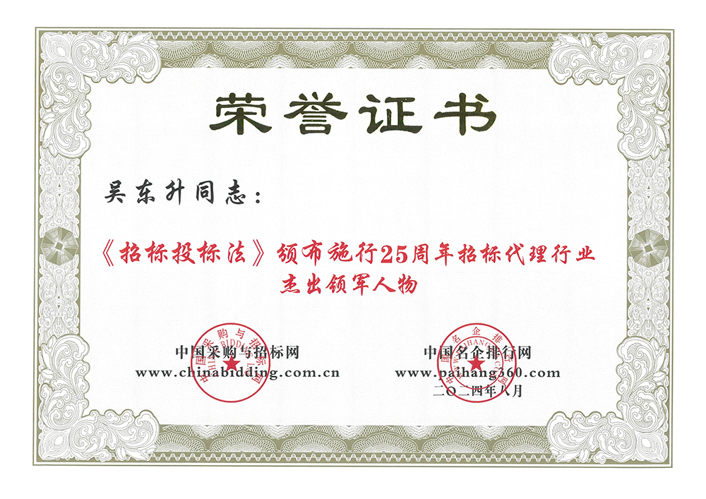 公司党委副书记、总经理吴东升获评“《招标投标法》颁布施行25周年招标代理行业25位杰出领军人物”荣誉称号,22名业务骨干分获“ 优秀招标师”和“优秀造价工程师”荣誉称号。