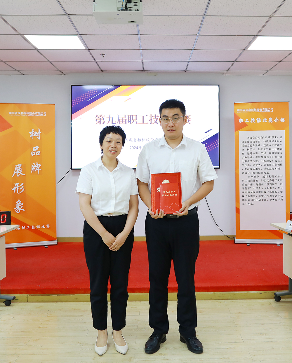 公司总工办副主任黄向东向获得三等奖的选手杨春泽颁奖